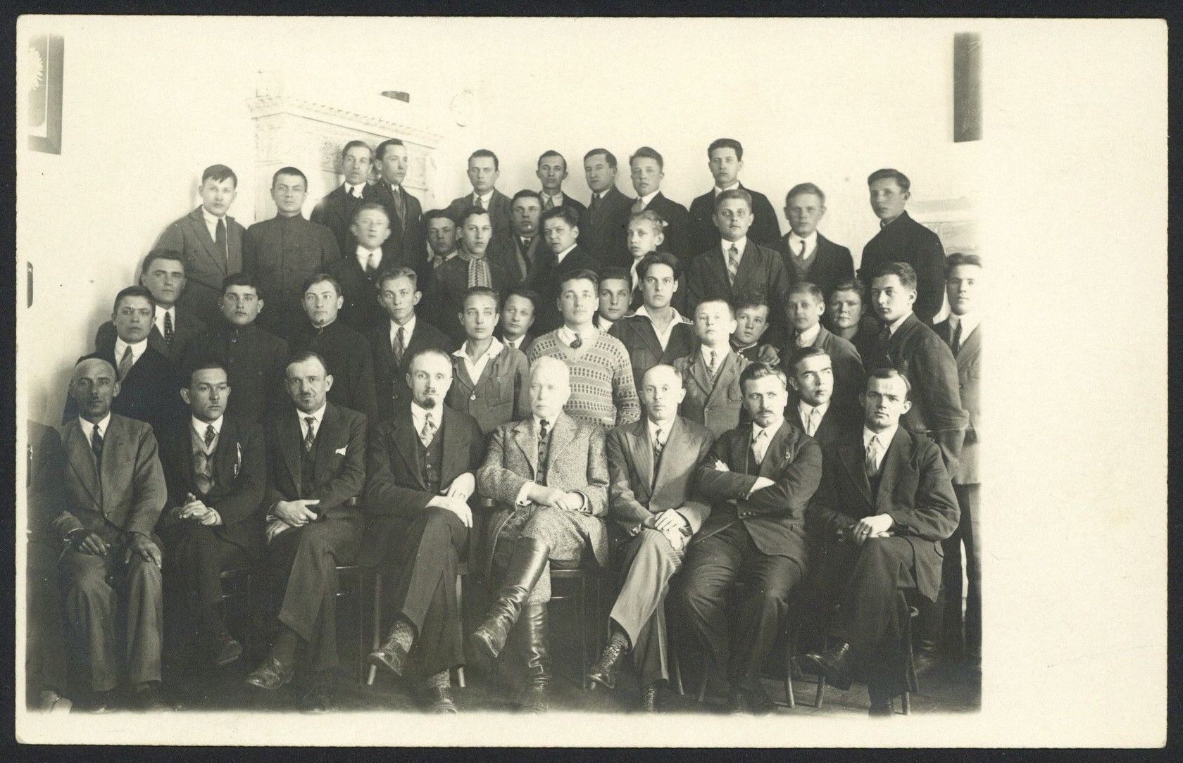2. Фота Лявона-Дубейкаўскага з настаўнікамі і навучэнцамі Дзяржаўнай школы муляроў у Вільні (1928 г.)