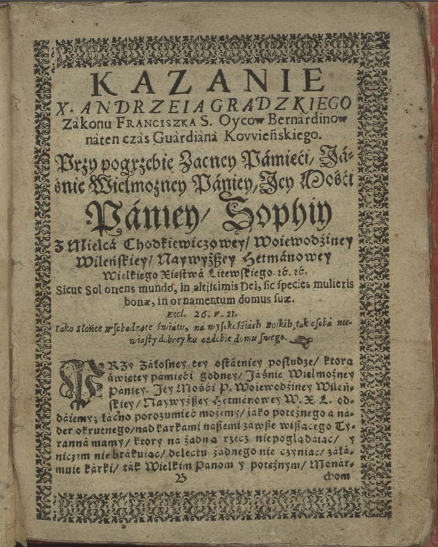ㅤKazanie na pogrzebie zacney pamięci JW. JM. Paniey Zophiey z Mielca Chodkiewiczowey...