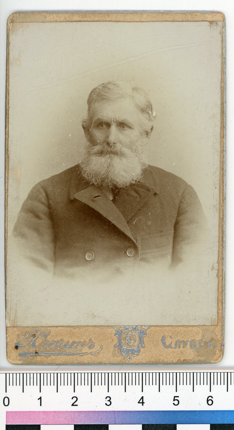 Партрэт невядомага мужчыны сталага ўзросту (з сівой барадой і вусамі). На паспарту.