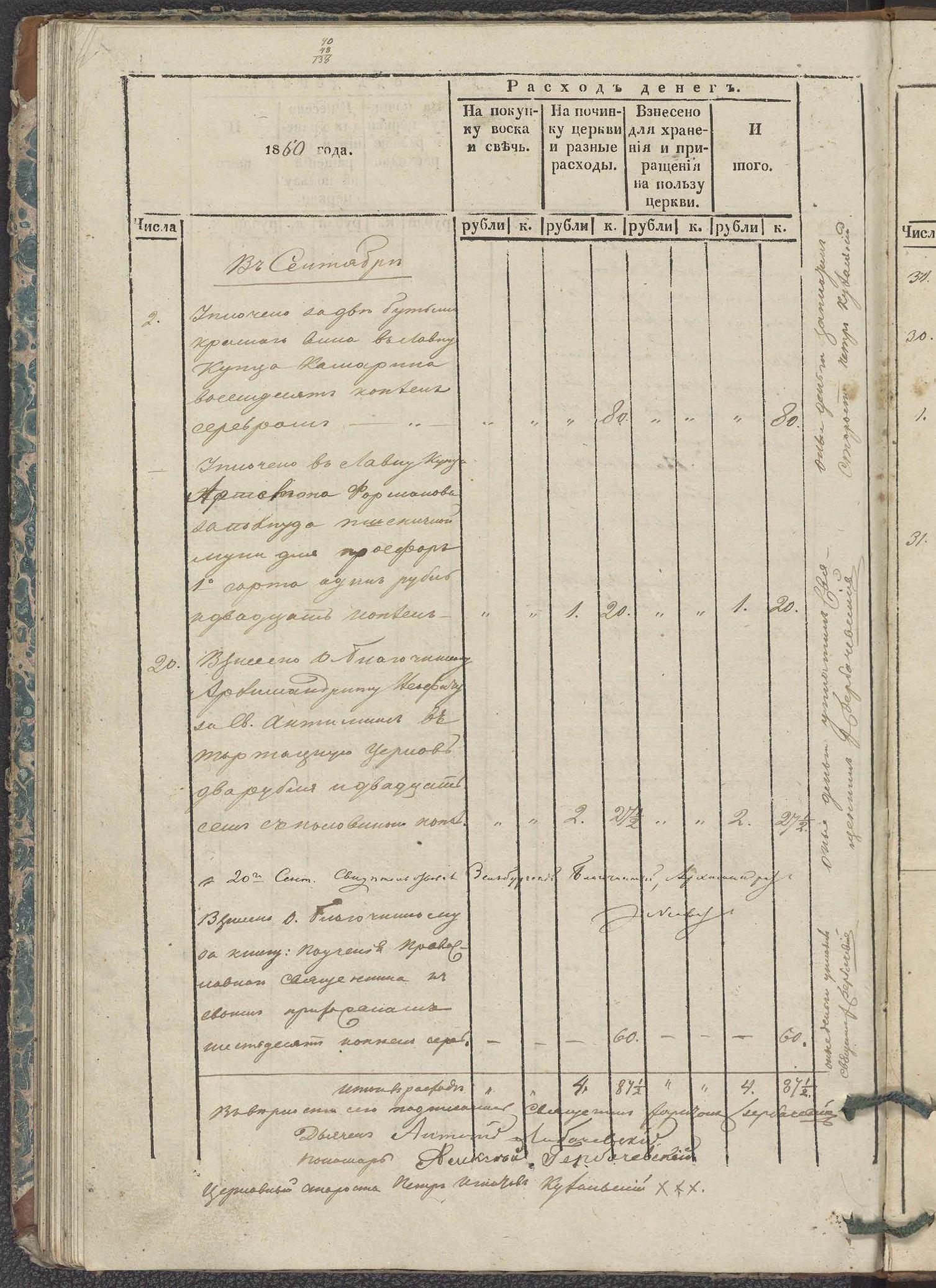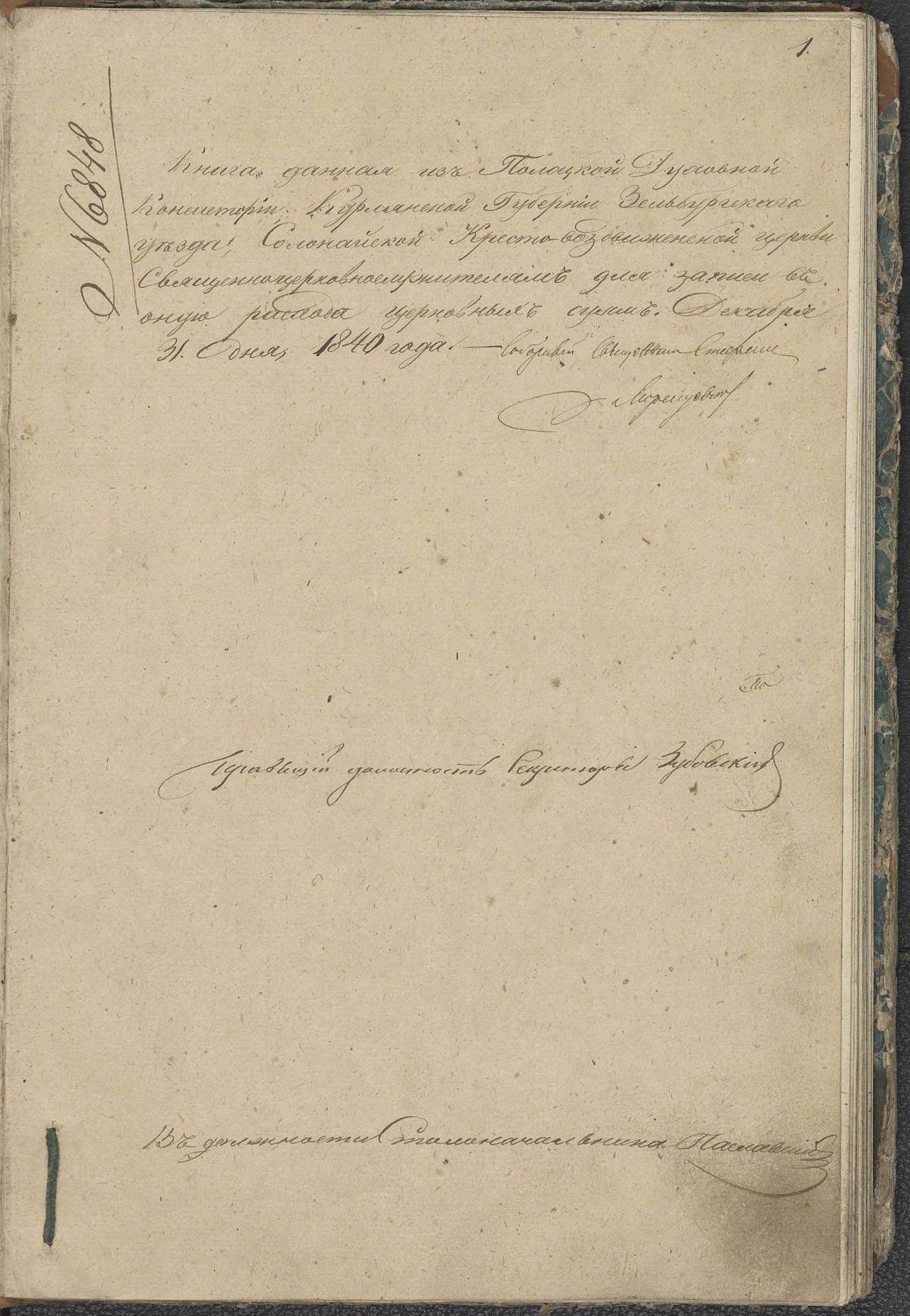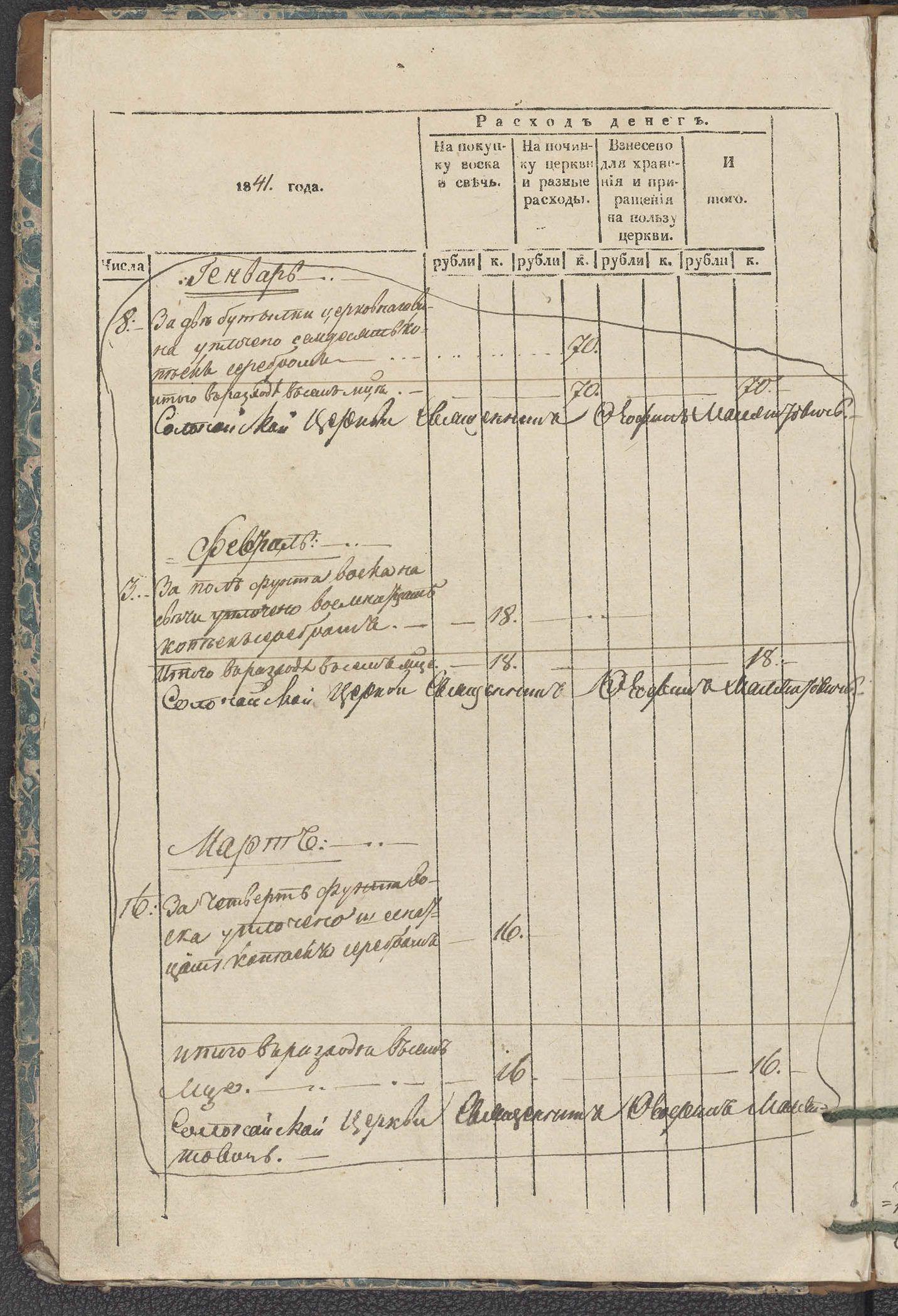 Расход денег Солонайской Кресто-Воздвиженской церкви Зельбургского уезда Курляндской губернии (Полоцкая епархия) за 1841–1860 гг.
