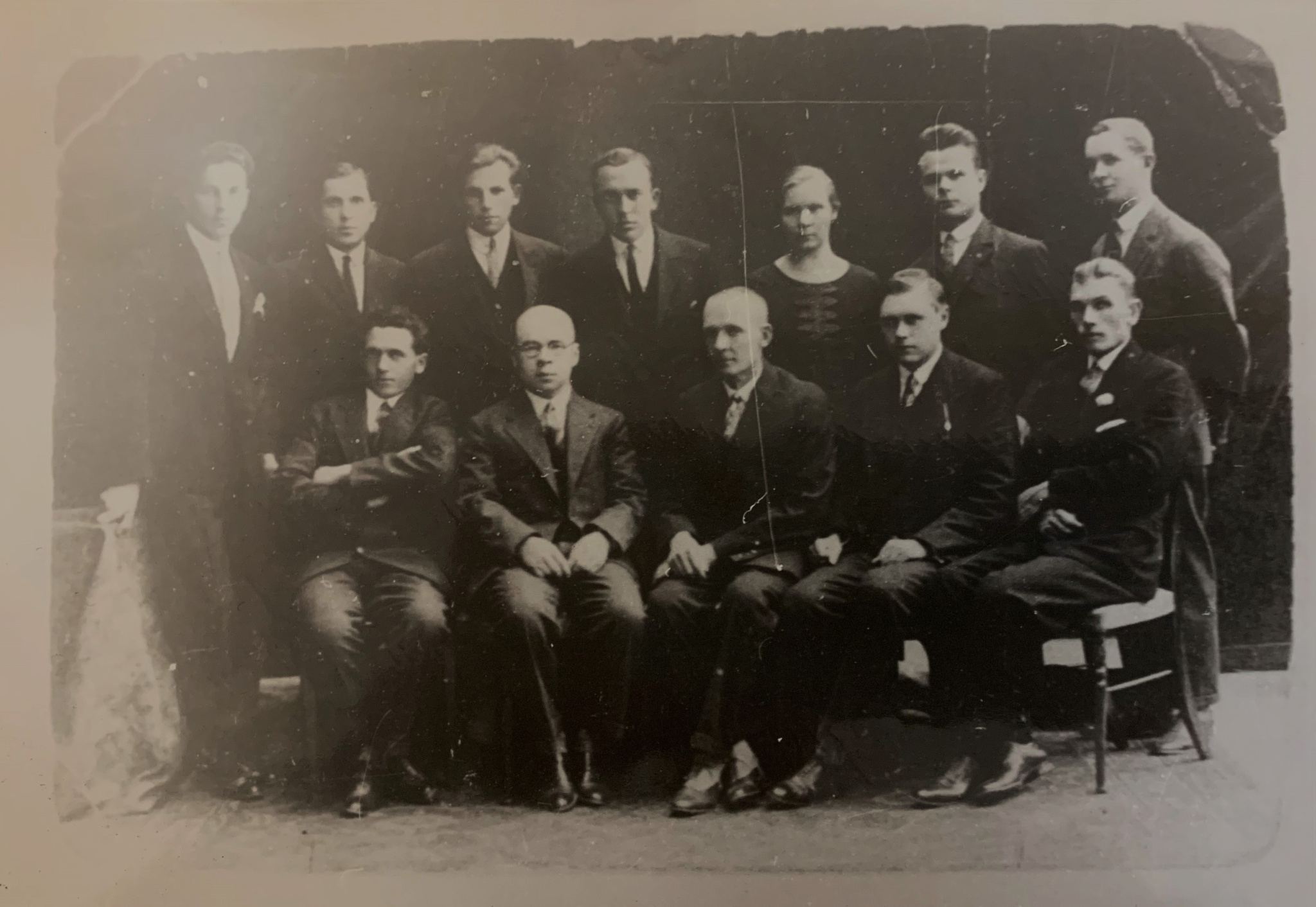Фота Мікалая Шыманкі з беларускімі дзеячамі падчас прыезду дэлегацыі беларускіх літаратараў у Прагу ў 1927 г. (копія).