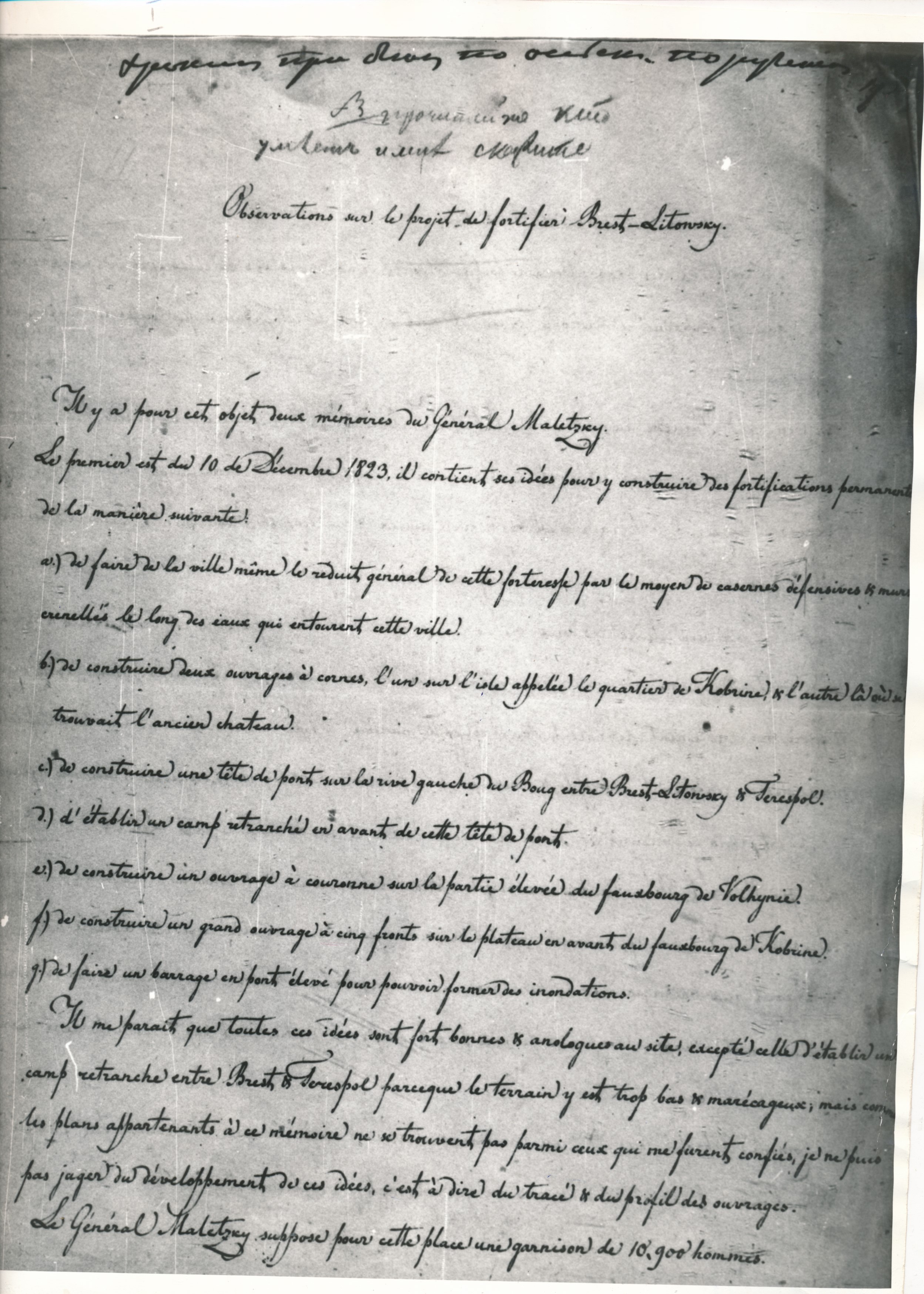 Дакумент "Заўвагі па праекце ўмацавання Брэст-Літоўска"